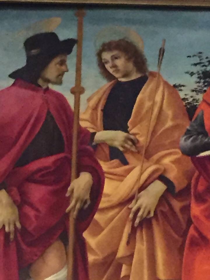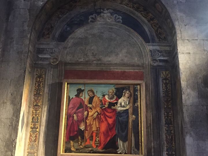 А ещё у этой церкви кружевной каменный фасад, впервые изображённая в технике терракотовой глазури Мадонна с младенцем ,и нервные руки меланхолических углубленных в своё горе святых на картине Филиппино Липпи. Боттичелли явно было у кого поучиться….