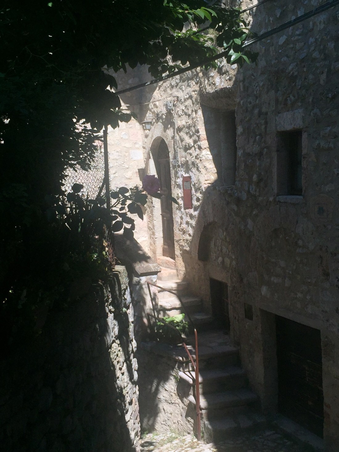 Оставив благодарность в книге посетителей музейчика ( кроме нас- все итальянцы), продолжаем осмотр городка . Валло ди Неро входит в список самых красивых борго ( деревушек) Италии. Виды на долину, чистота крутых каменных ступенек-улиц, заботливо ухоженные палисадники и цветы, цветы в горшках на каждом углу. Изредка мы встречаем пожилых дам, беседующих друг с другом на крылечках, более молодые рассекают на головокружительных виражах отвесных средневековых узких улочках на своих маленьких машинках. Туристическому транспорту конечно же въезд запрещён, да и кто бы рискнул…
