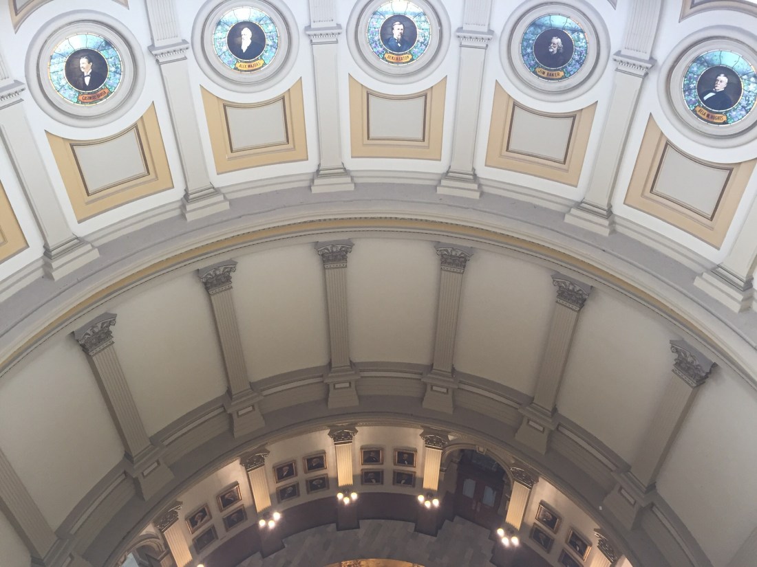 В залах Ассамблеи и Заседаний Сената замечательные витражные портреты выдающихся людей