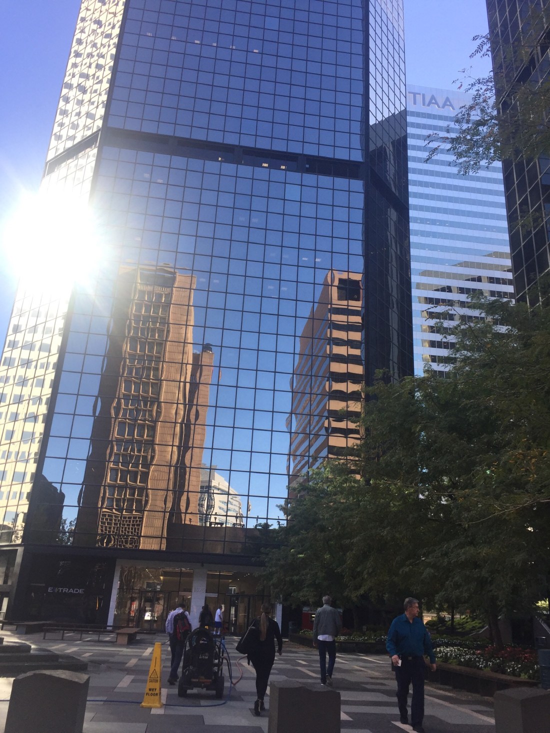 Строго напротив Капитолия величественное здание Сити Холла с золотым орлом на куполе