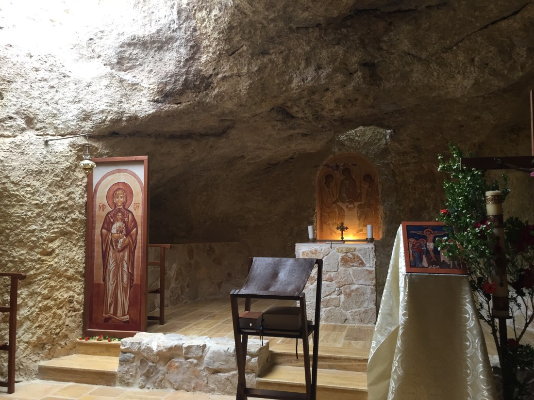но мы, как и нормальные герои, идем в обход за всезнающей Женей и попадаем в удивительную крошечную церковь, устроенную в пещере. Этот своеобразный грот освещается солнцем через отверстия в потолке