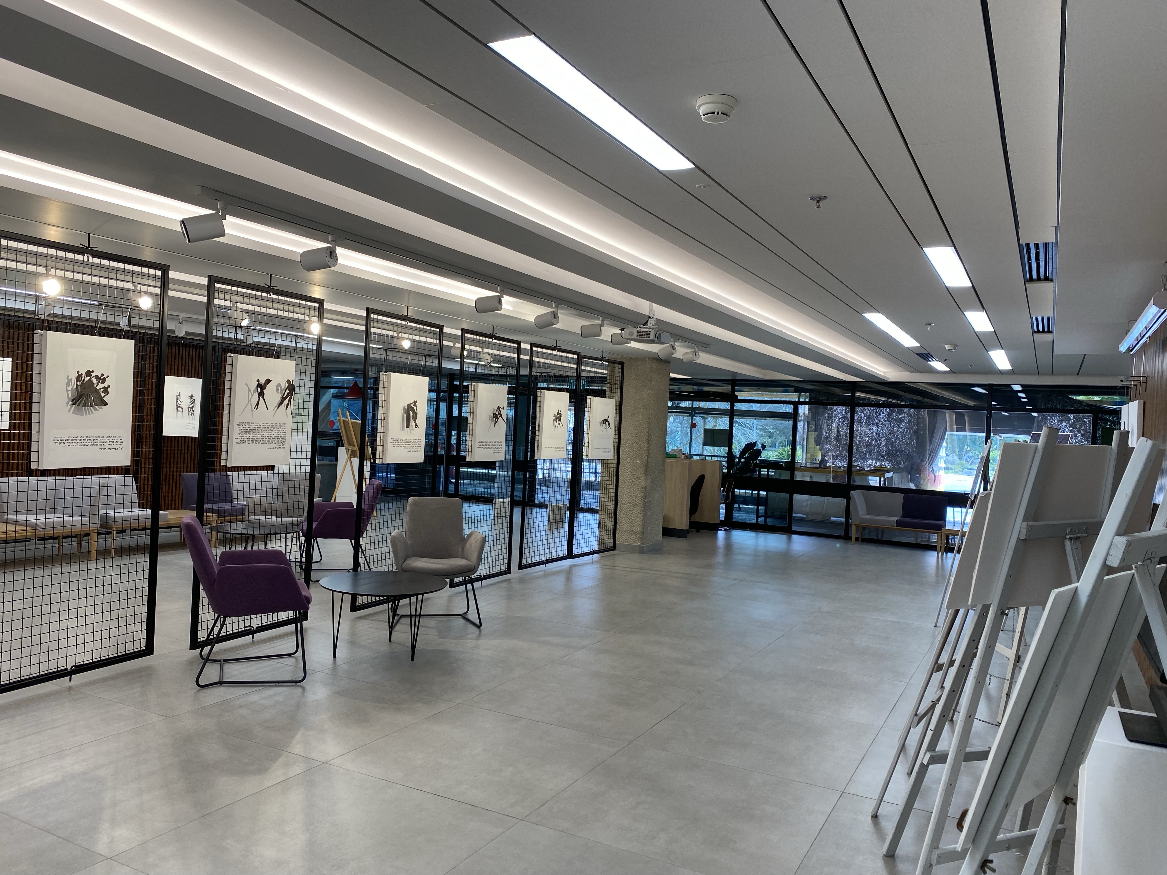 В лобби библиотеки выставочное пространство, оригинально и современно декорированное