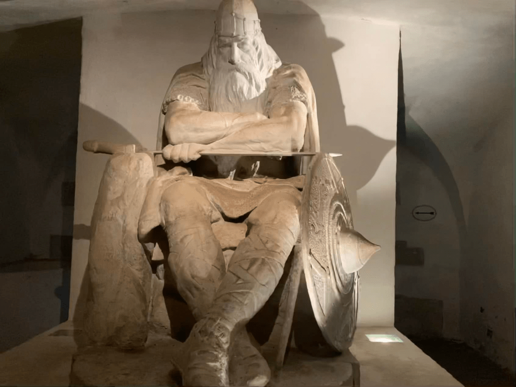 Зато в сырых и слабо освещённых подземельях-казематах встречает туристов Статуя Хольгера Датского. Глаза его закрыты, он погружен в глубокий сон, но рука сжимает меч, и если призовёт его народ, встряхнется Хольгер, слезет с печи и разгонит всех врагов (нет, это Илья Муромец с печки слезет, но неважно — много общего в фольклоре разных стран). В 1846г нам всем рассказал о нем Ганс Христиан Андерсен. , который прожил тут в Эльсиноре целый год.