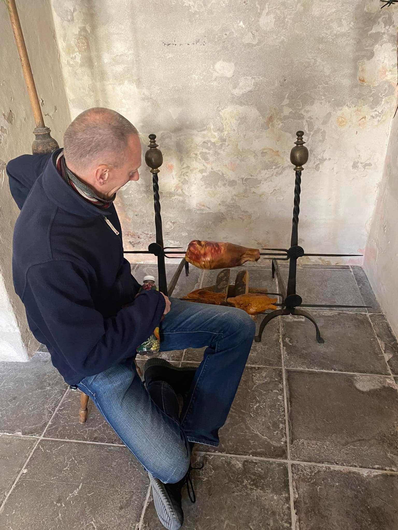 На королевской кухне мы вдоволь повеселились с нашим другом Оле, я заставила его примоститься на крохотный стульчик и демонстрировать, как он жарит на вертеле баранью ногу, обещанную на званый ужин.