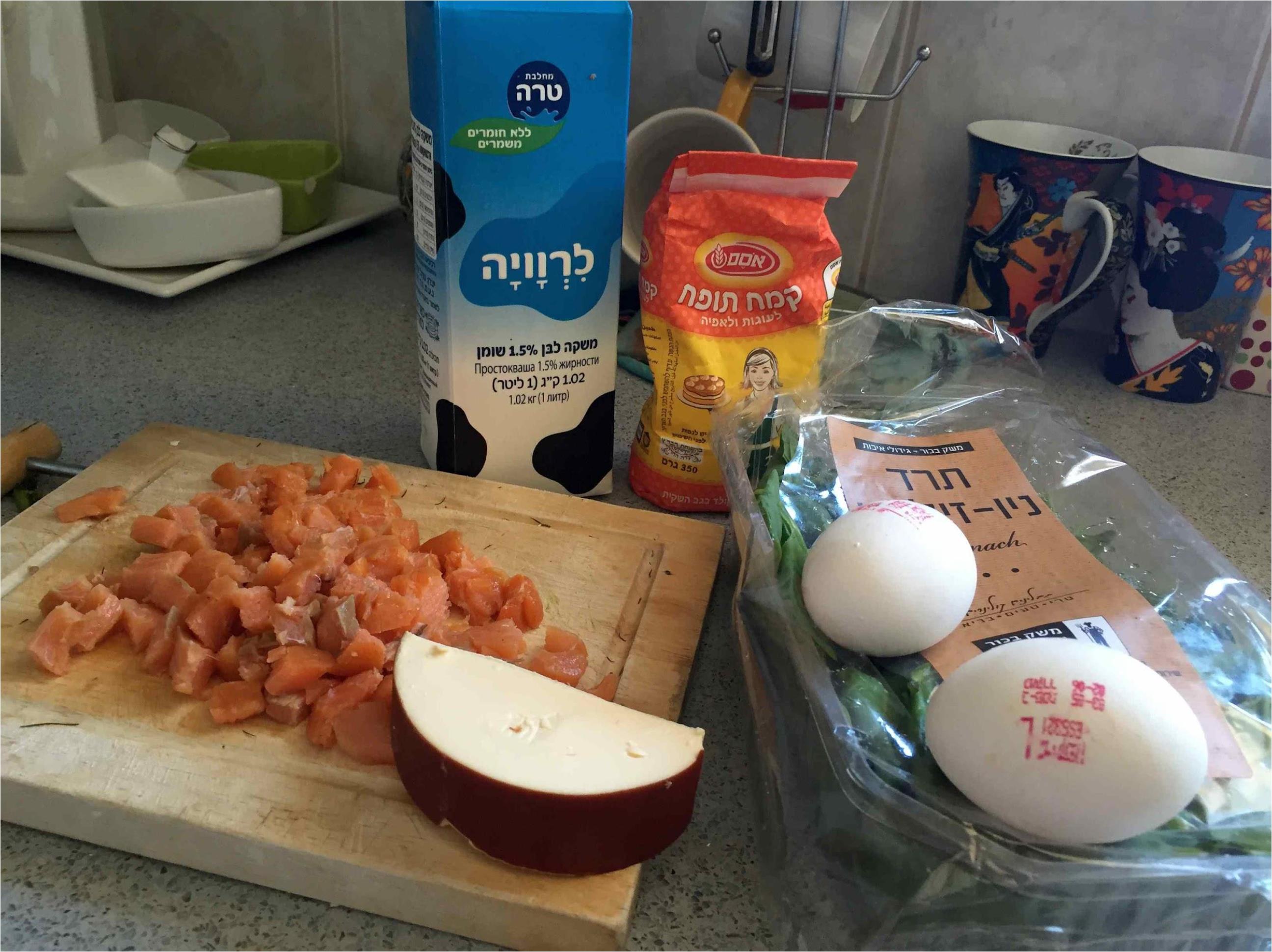 беру кусочки или спинки, более дешевые) - 50 г сыра (я брала копченый — гвина меушенет), немного свежей зелени (я добавила нарезанный шпинат и не прогадала)