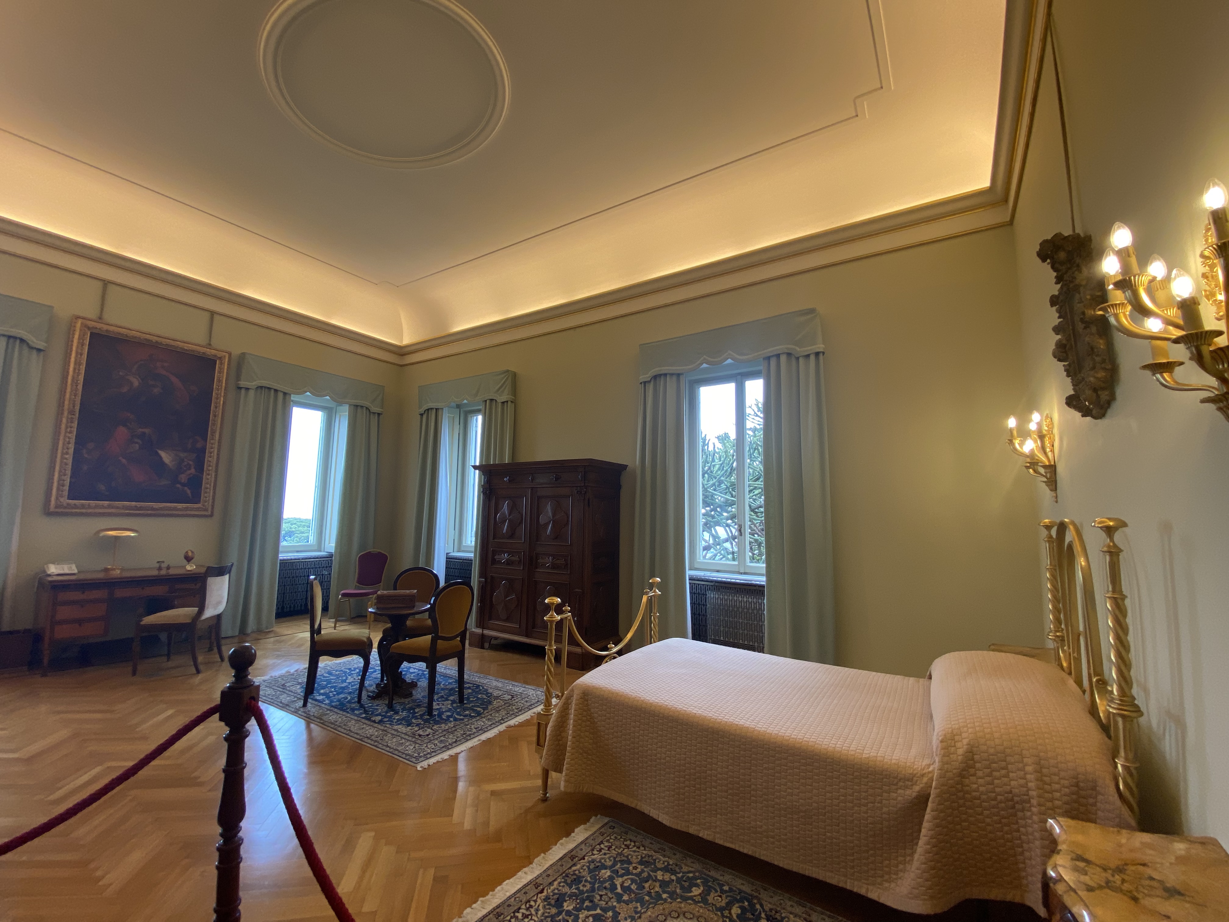 Нас более всего впечатлила выставка фотографий 1944 г. о солидарности ватиканской высшей власти с простым народом во время Второй мировой войны, когда убежище от бомбежек и приют из разоренных домов итальянцы нашли именно в папской резиденции. Среди фонтанов и клумб стояли палатки, висели детские пеленки, и несколько женщин даже рожали на папской кровати.