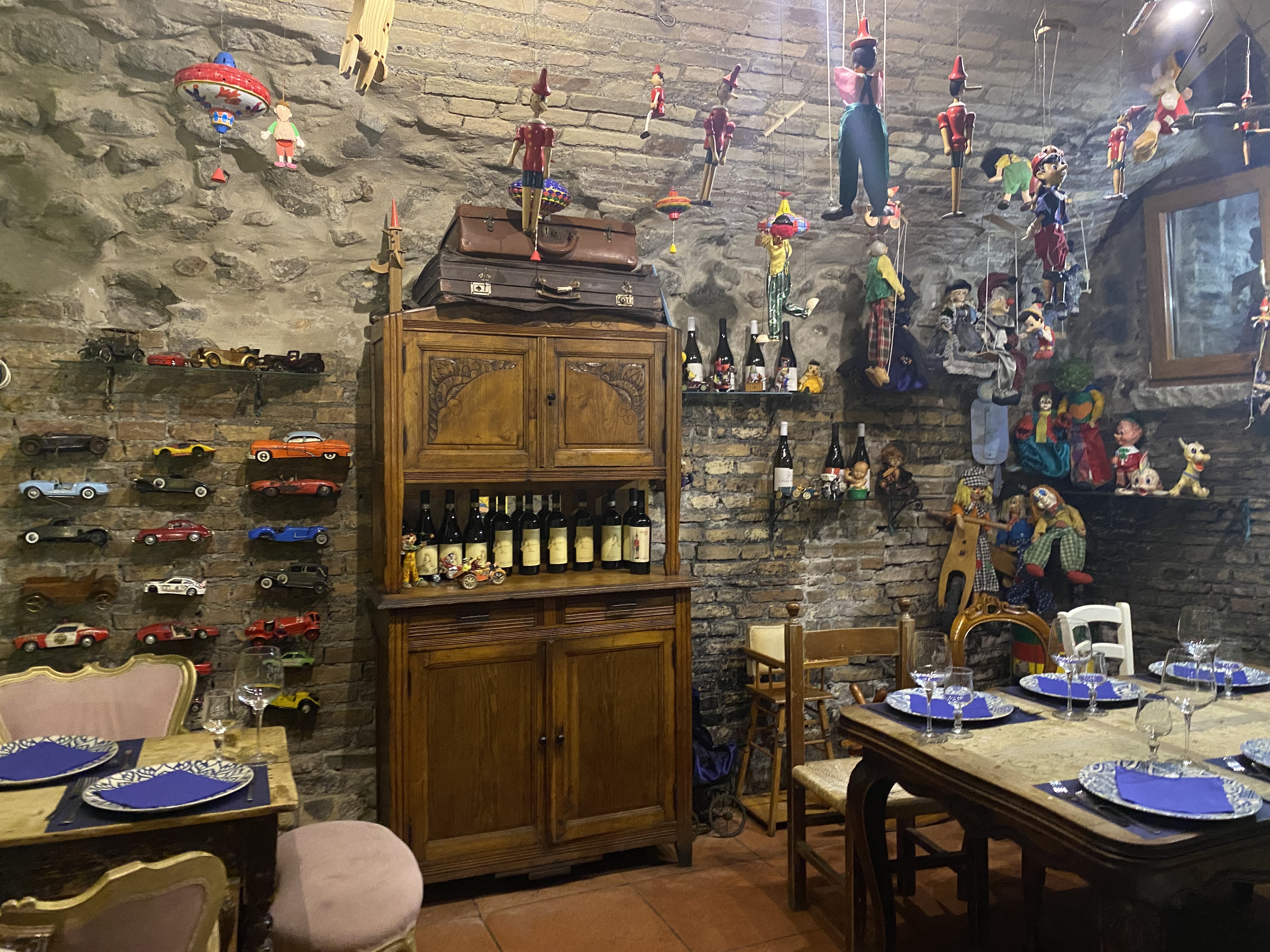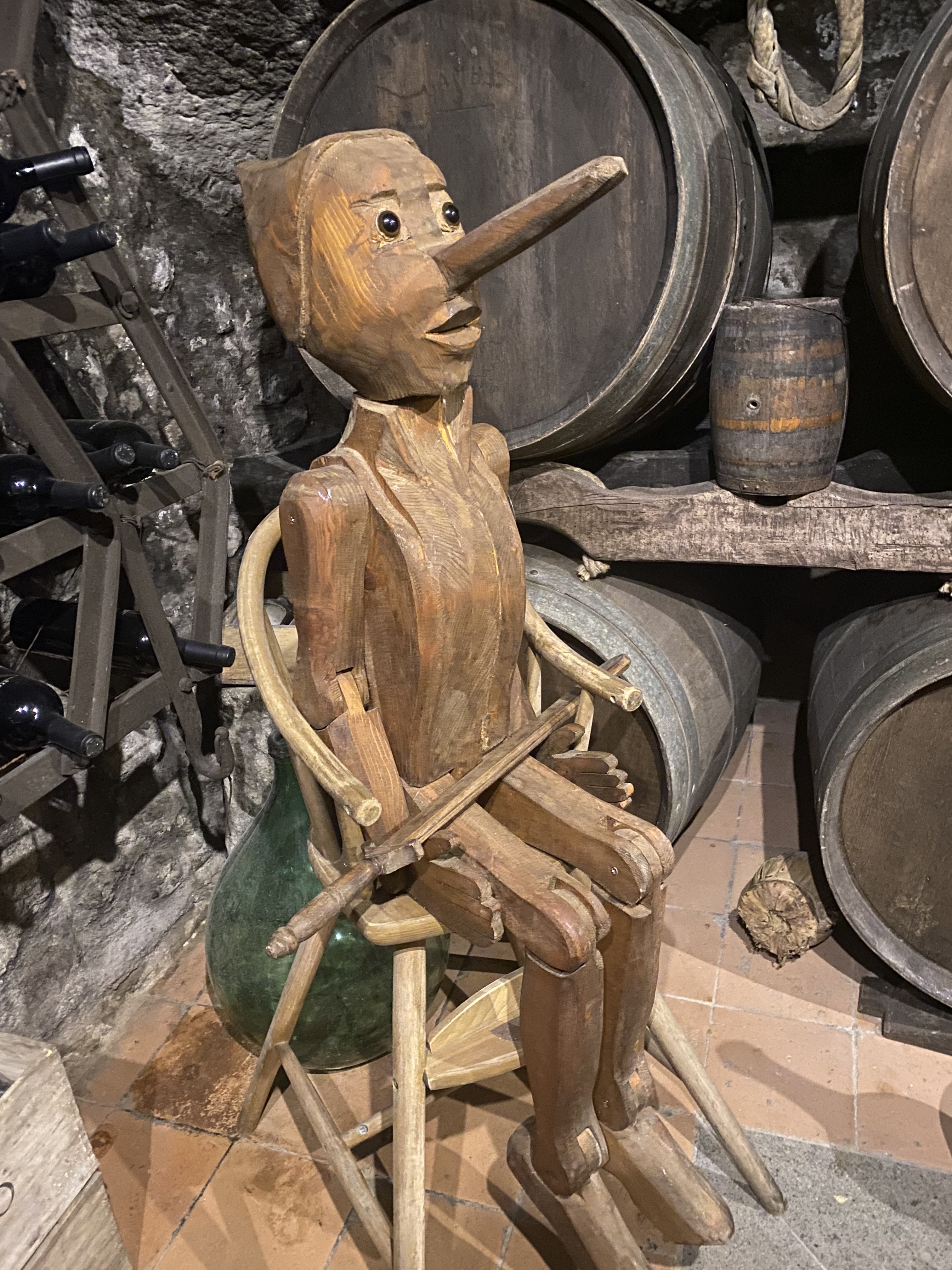 Но самым неожиданным открытием для меня, пожалуй, стало то, что я нашла что-то совершенно уникальное: оригинального Пиноккио, истинного, вырезанного папой Карло много лет назад. Этот немного страшноватый персонаж, знакомый всем с детства, будто вышел прямо из страниц книги, и теперь хранится в этом удивительном ресторане. И не спорьте — я знаю, так и было.