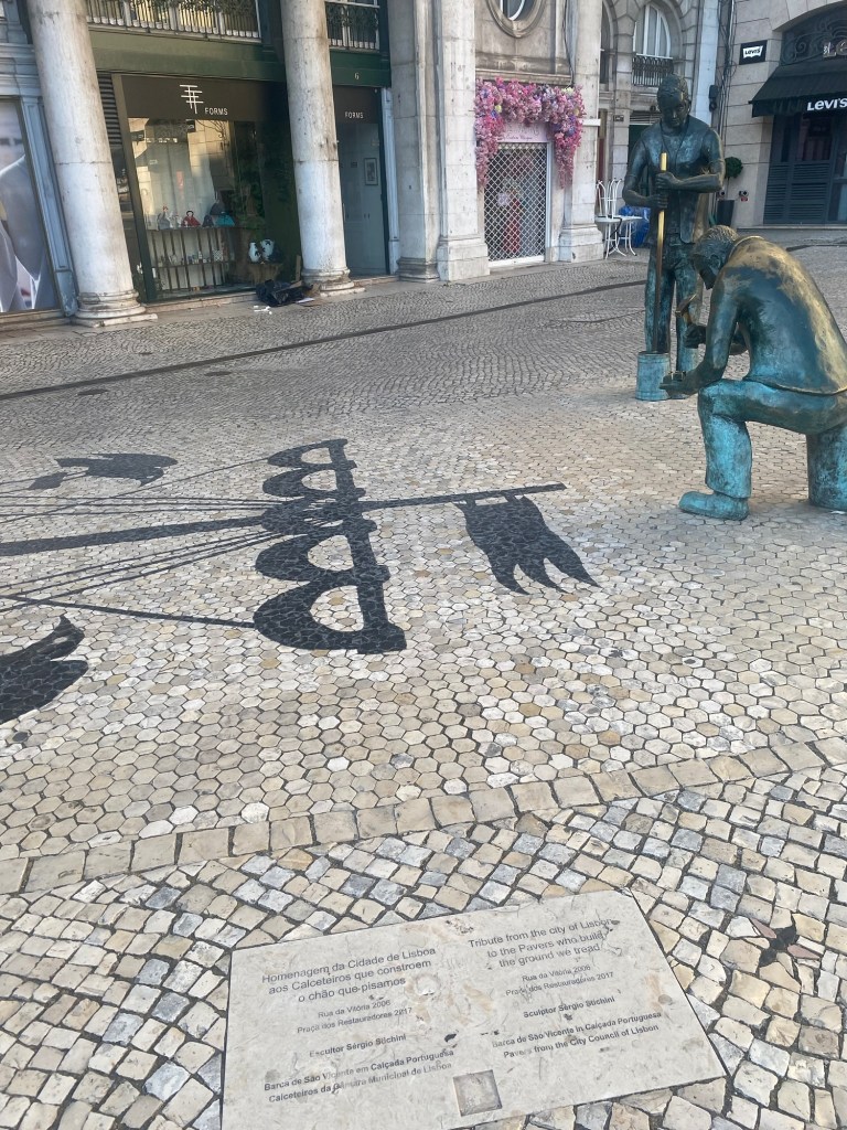 Или вот удививший своей локацией памятник, изображающих двух мастеров, явных пролетариев с орудиями труда, находится он в самом начале великолепного бульвара Авенида Либертаде в самом фешенебельном столичном районе. Оказывается, так португальцы отдают честь тем труженикам, благодаря чьему мастерству Лиссабон славится своими узорчатыми каменными покрытиями
