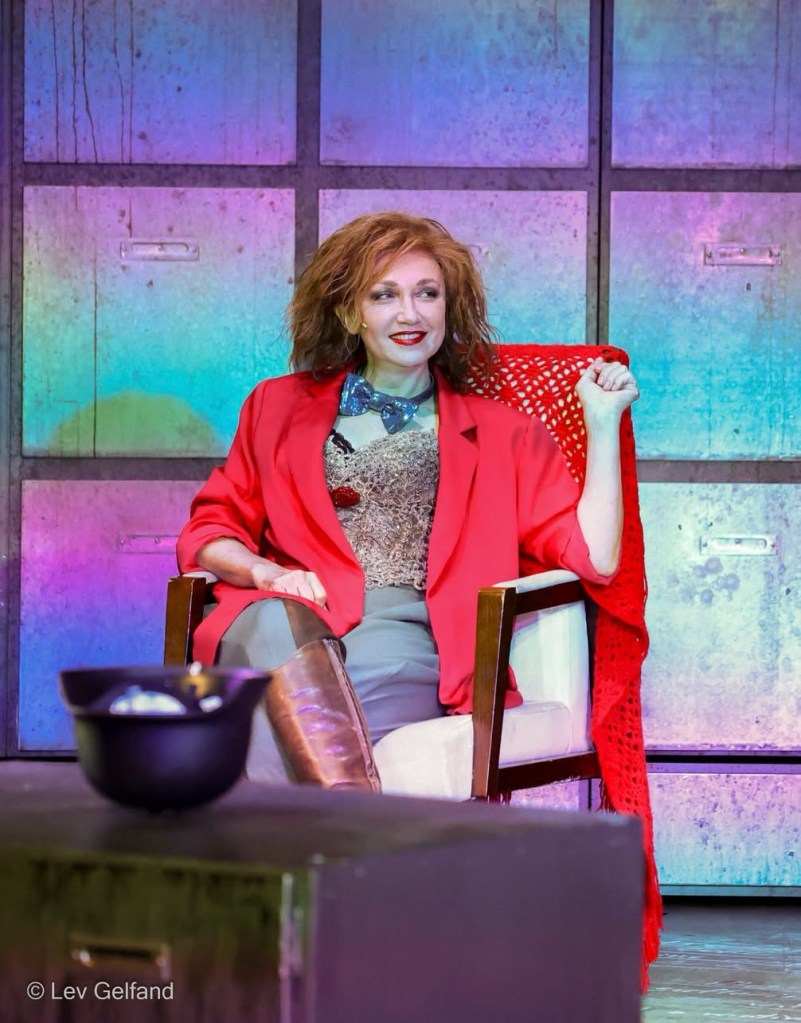 В этом спектакле, как на подбор, сошлись три театральных женских ипостаси — режиссер (молодая и очень продуктивная израильтянка, работающая в Германии, Сапир Хеллер ), актриса ( ведущая актриса Гешера, наконец вернувшаяся на родную сцену Евгения Додина) и наконец главная героиня пьесы Бертольда Брехта маркитантка Анна Фирлинг, за свою безбашенность прозванная Мамаша Кураж.